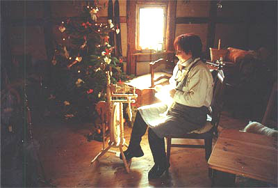 | Spinnvorführung Woran hat sich Dornröschen denn nun gestochen? Diese Frage versucht Ines Münzner in ihrer Spinnvorführung zu klären. Einen mehr oder weniger feinen Faden haben unsere Vorfahren schon vor über Tausend Jahren spinnen können. Heute beherrschen nur noch wenige das einst vor allem auf dem Lande weit verbreitete Handwerk. Ines zeigt, wie Spinnrad, Wolle und Spindel richtig gehandhabt werden. Sie gibt einen Überblick über die Geschichte des Spinnens von der Handspindel bis zum Spinnrad. Außerdem erfährt man, wie früher die Wolle gefärbt wurde und daß viele alte Sprichwörter - z. B. "den Faden verlieren" - ihren Ursprung im Spinnen haben. Wer sich traut, kann auch selbst einmal das Rad treten und versuchen, einen Faden zustande zu bringen. |